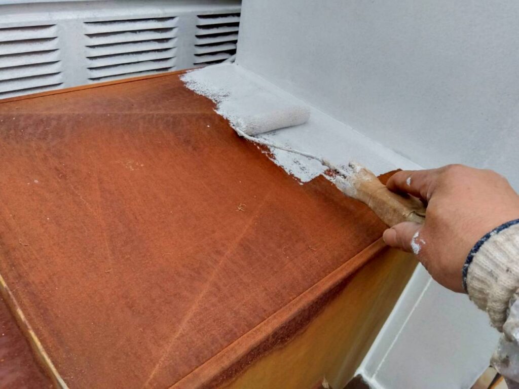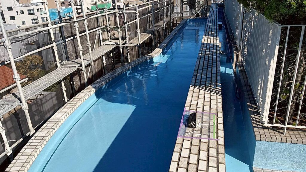 | バルコニー側溝・庇 屋上室外機部床 | ウレタン塗膜防水(密着工法) |